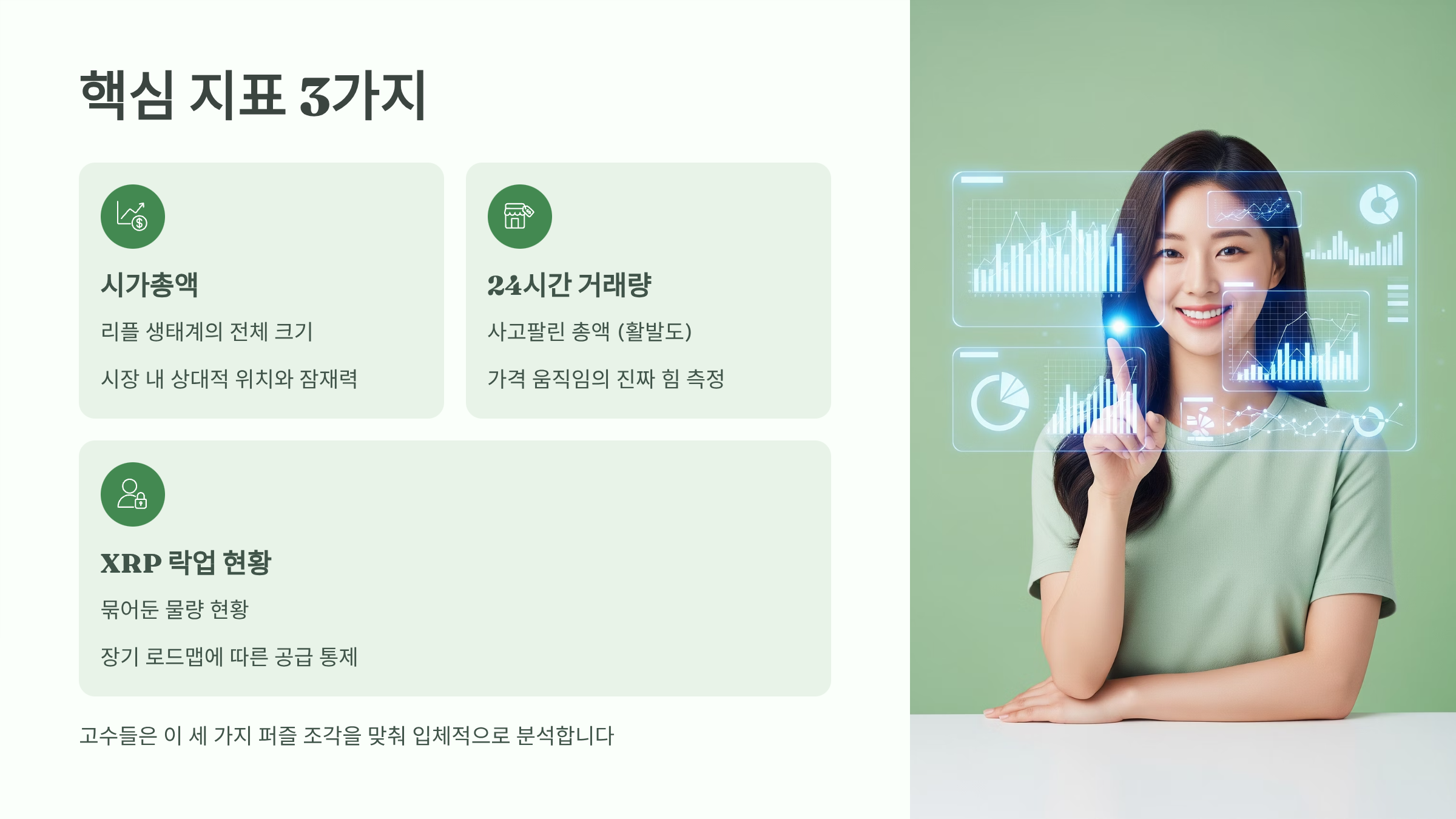 가격은 결과일 뿐입니다. 고수가 되려면 그 결과를 만든 원인, 즉 온체인 데이터를 읽을 줄 알아야 합니다. 리플(XRP)의 현재 가격을 해석하기 위해 반드시 봐야 할 핵심 지표 3가지를 가장 쉽게 정리했습니다.