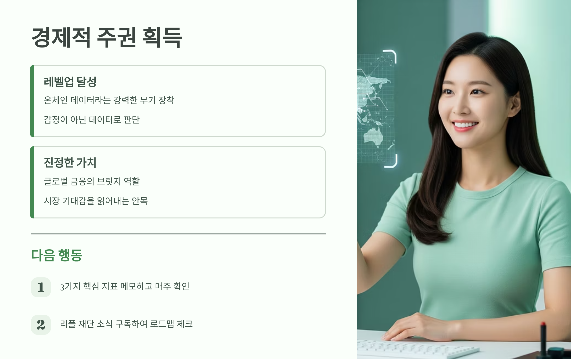 이 글을 끝까지 읽는 순간, 여러분은 단순한 가격 변동에 휘둘리는 초보 단계를 졸업하게 될 것입니다. 리플(XRP)의 현재 상황을 객관적으로 분석하고, 스스로 자산을 통제하며 기회를 잡는 투자자로 레벨업할 수 있는 명확한 로드맵을 얻게 될 것입니다.