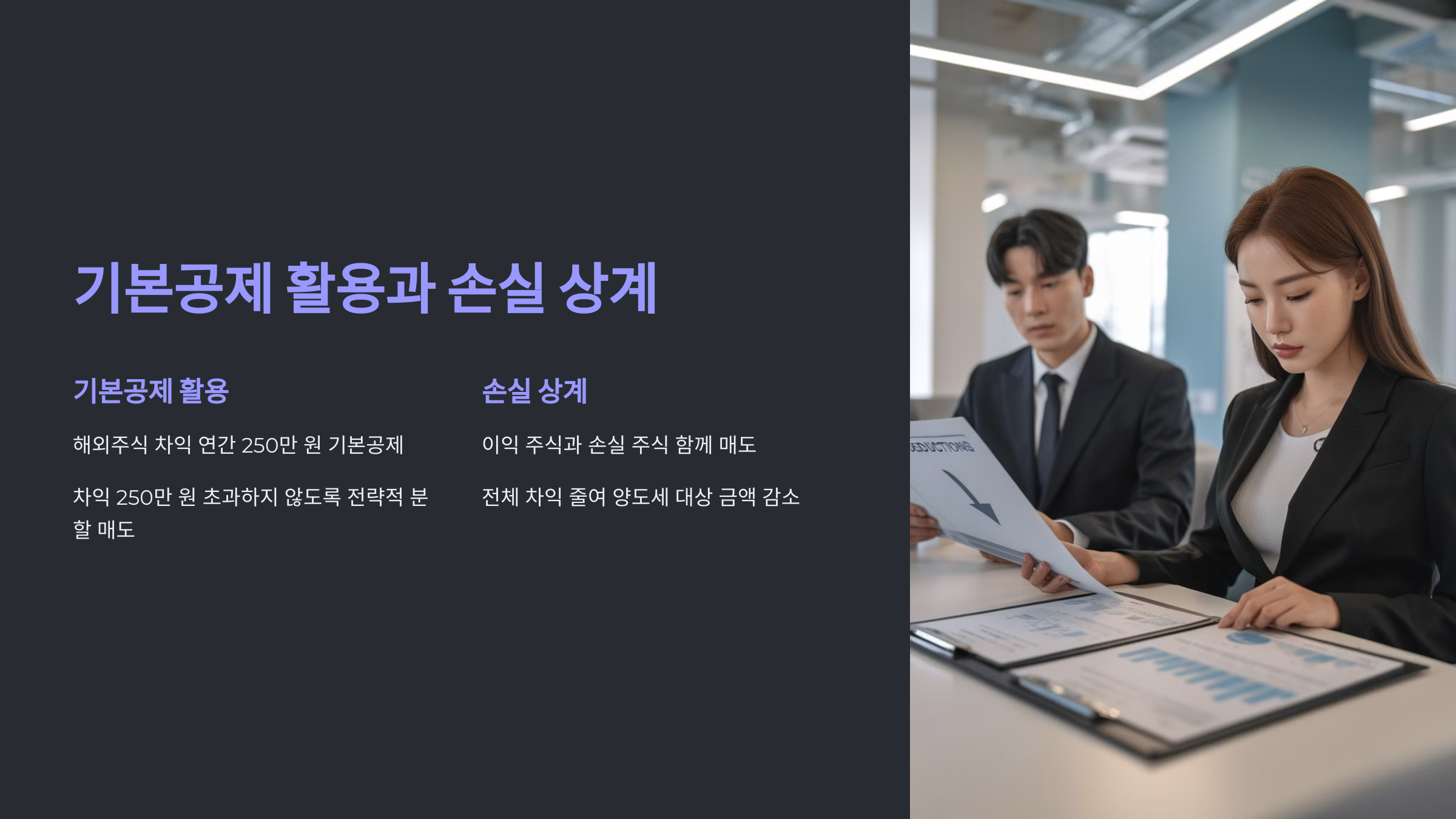 - 기본공제액 활용 (국내주식 2,000만원, 해외주식 250만원)